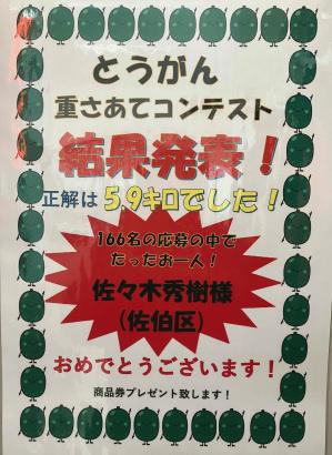 皆様お待たせしました!!毎年恒例のとうがん重さあてチャレンジ!!3rd!
